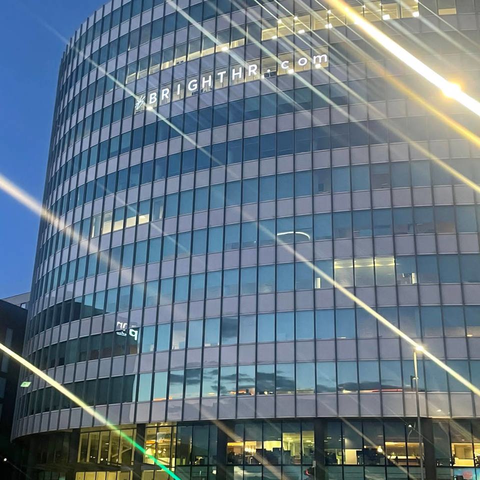 As a regular customer of ours, we were delighted to hear from Bright HR again and to be given the chance to work with them on another great project. With a brief to create a fully illuminated ‘BrightHR.com’ sign on the 9th floor of their head office in Manchester we were excited to come up with a bespoke solution to showcase their brand and create a visually striking piece of signage to be seen by all their clients.