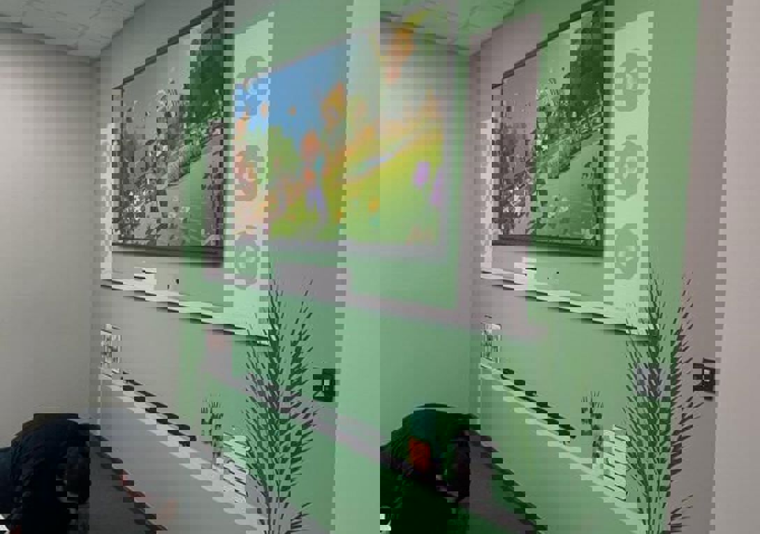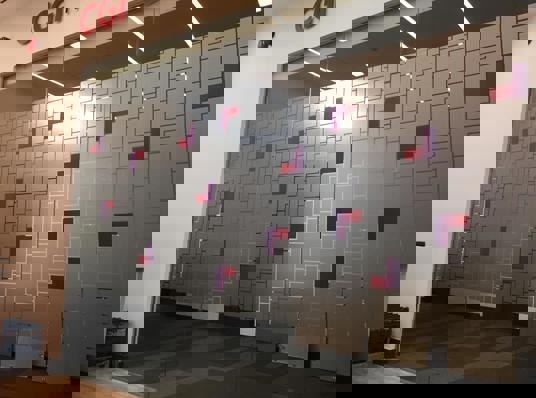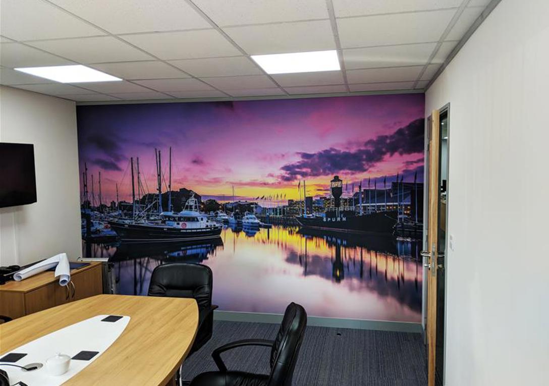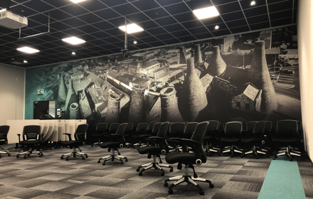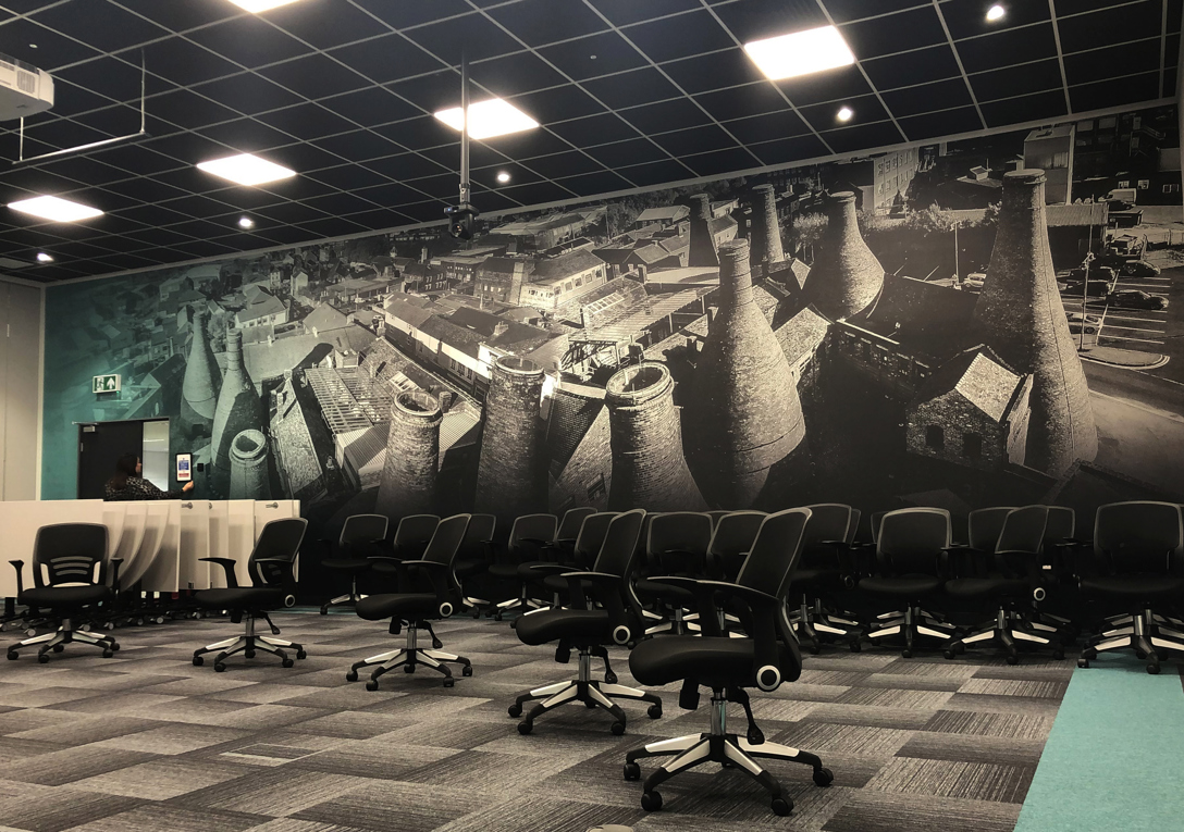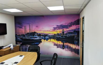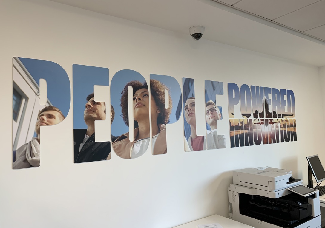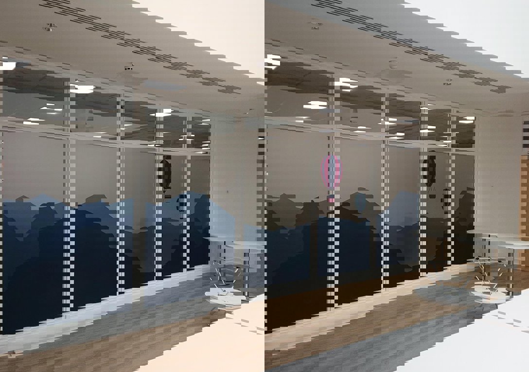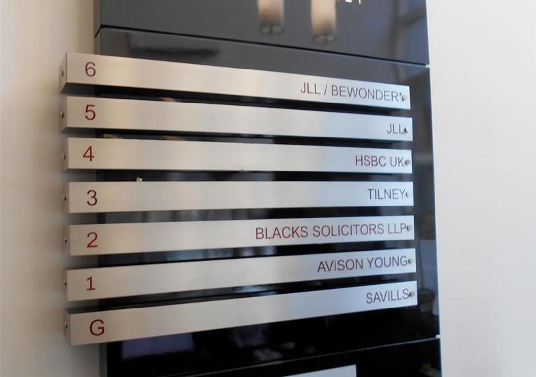 Architectural finishes | Custom wallpaper | Wayfinding signage | Door signs & Name Plates | Internal digital screens | Reception desk signs | Wayfinding signs | Window Graphics