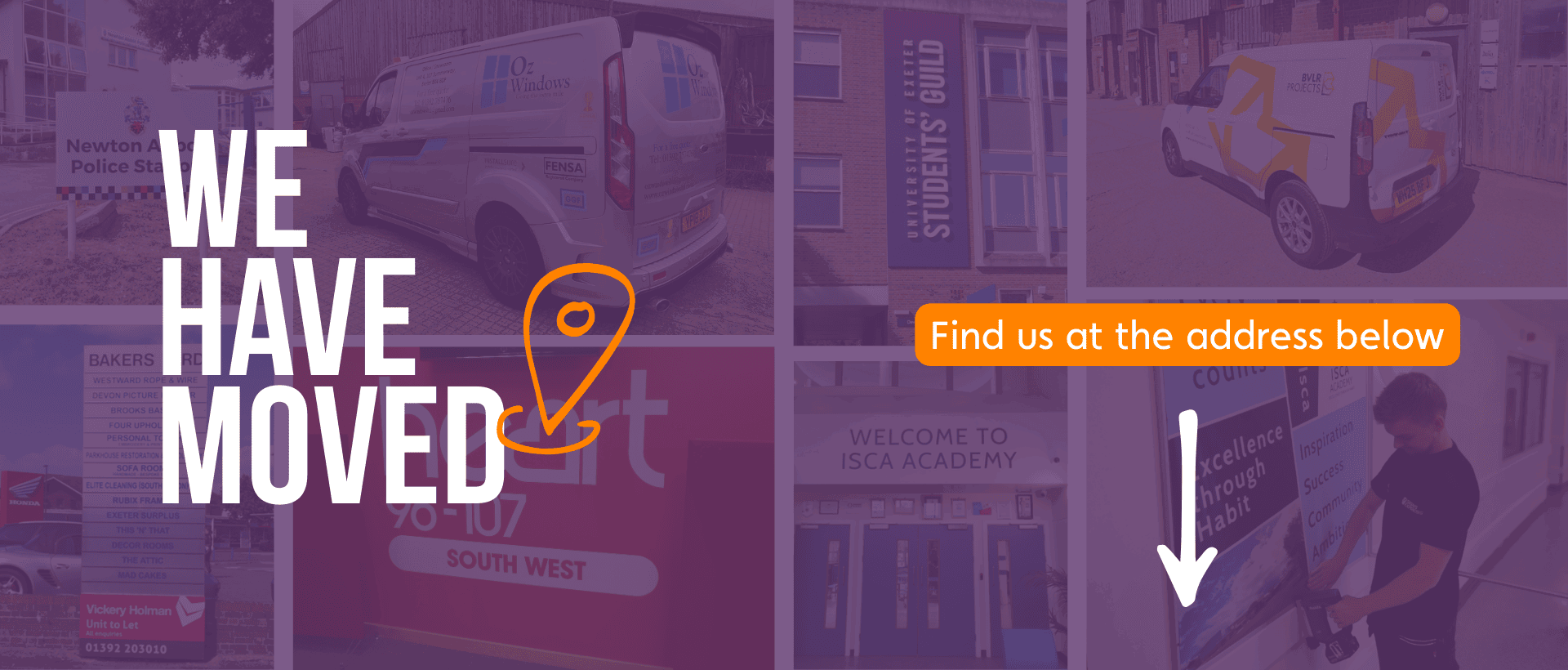 We have a fully kitted out production unit which is perfectly placed to offer a full range of signs and graphics solutions to businesses in Exeter and the surrounding area, large or small. Complete with a state-of-the-art, environmentally controlled vehicle bay for expert vehicle livery installation from car graphics to commercial van graphics and vehicle wrapping.