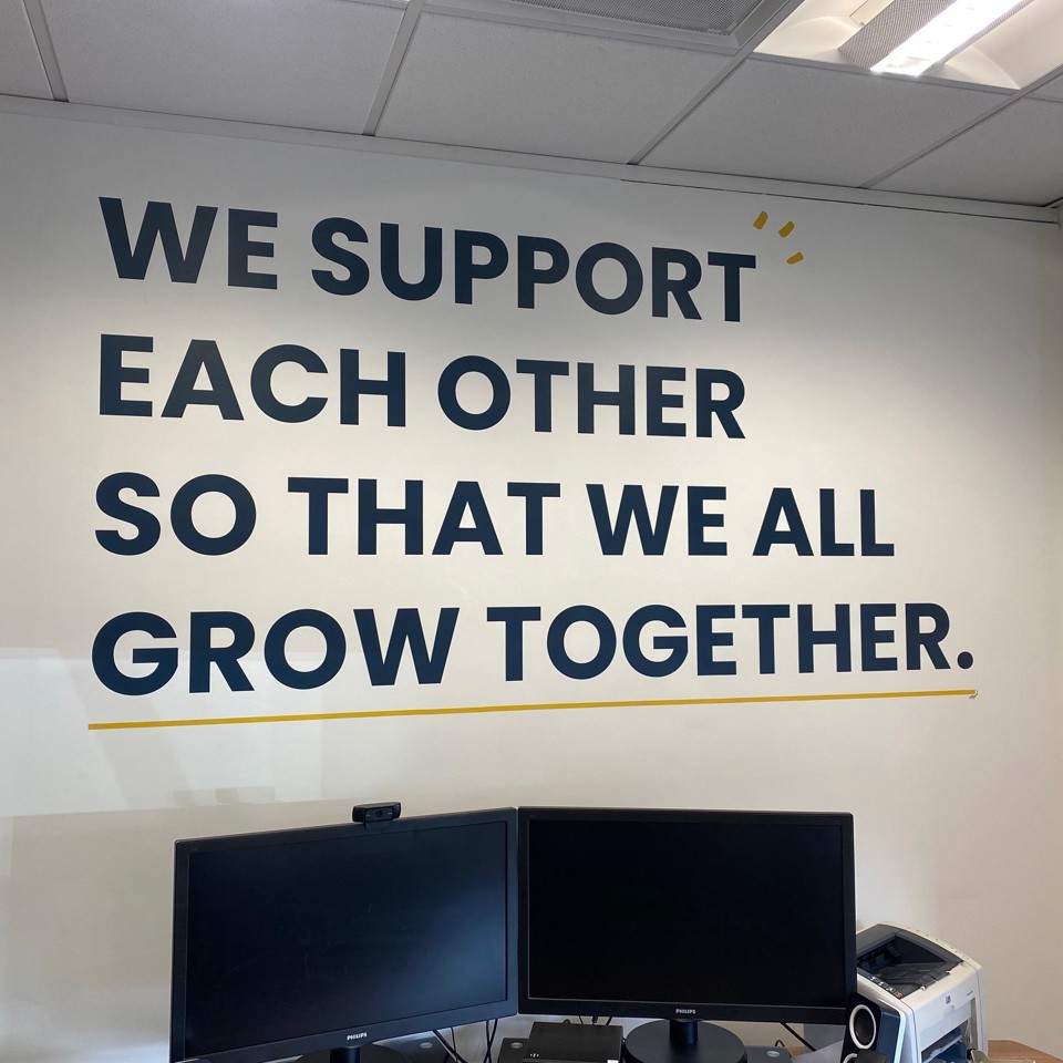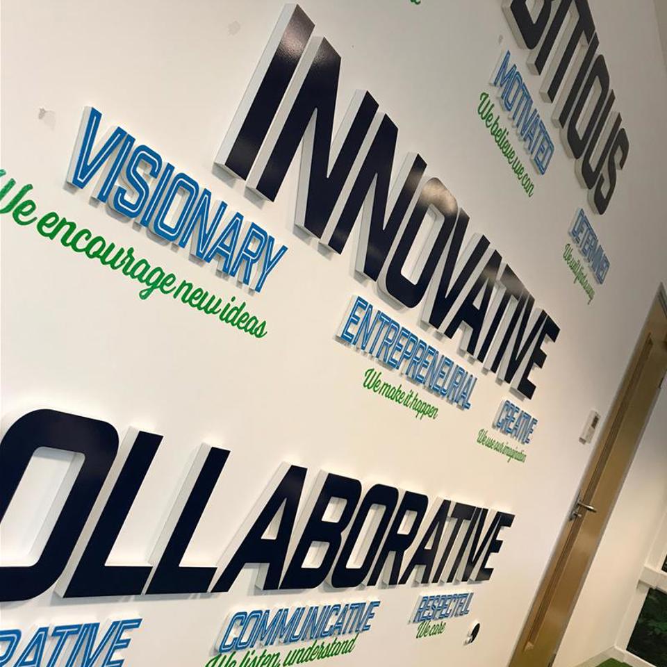 One way of displaying your story is to use carefully chosen quotes around your office. There are many ways in which you could choose to do this. For example, you could frame your values or use vinyl graphics to apply them directly onto the wall. Adding text at eye-level will help draw visitors’ attention, and it’s hard to miss your company philosophy when it’s literally written on the wall.