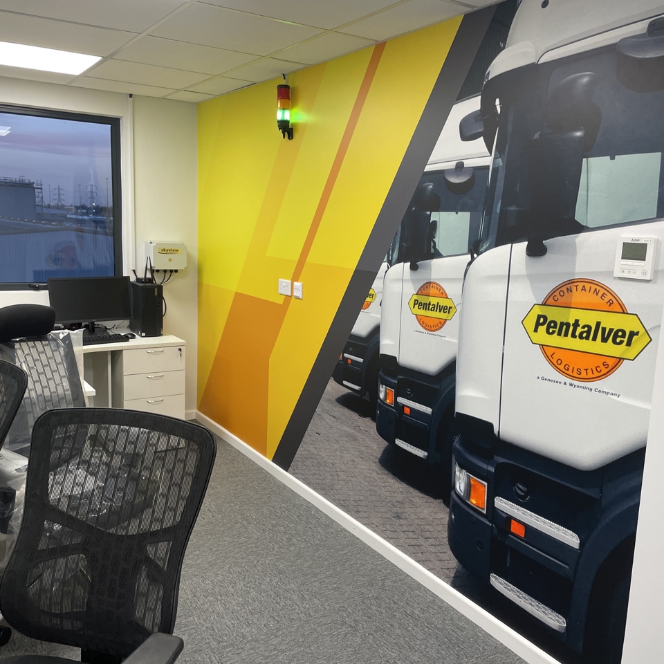 After all, nothing tells the story of your brand quite as your products and services do. A great example is Pentalver with an image of their fleet on custom wallpaper.
