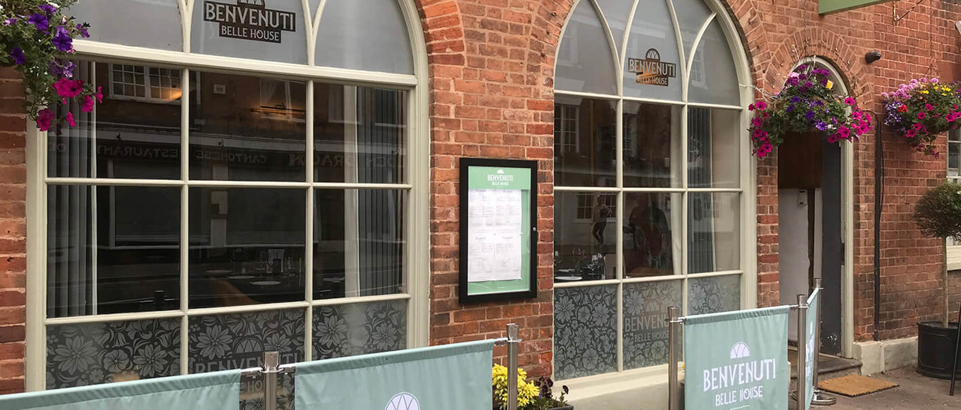 We recently worked with Benvenuti, an Italian restaurant in Pershore, to unveil brand new signage for their location in Belle House. The goal was to create a warm and welcoming environment for customers to enjoy their hearty Italian offering.