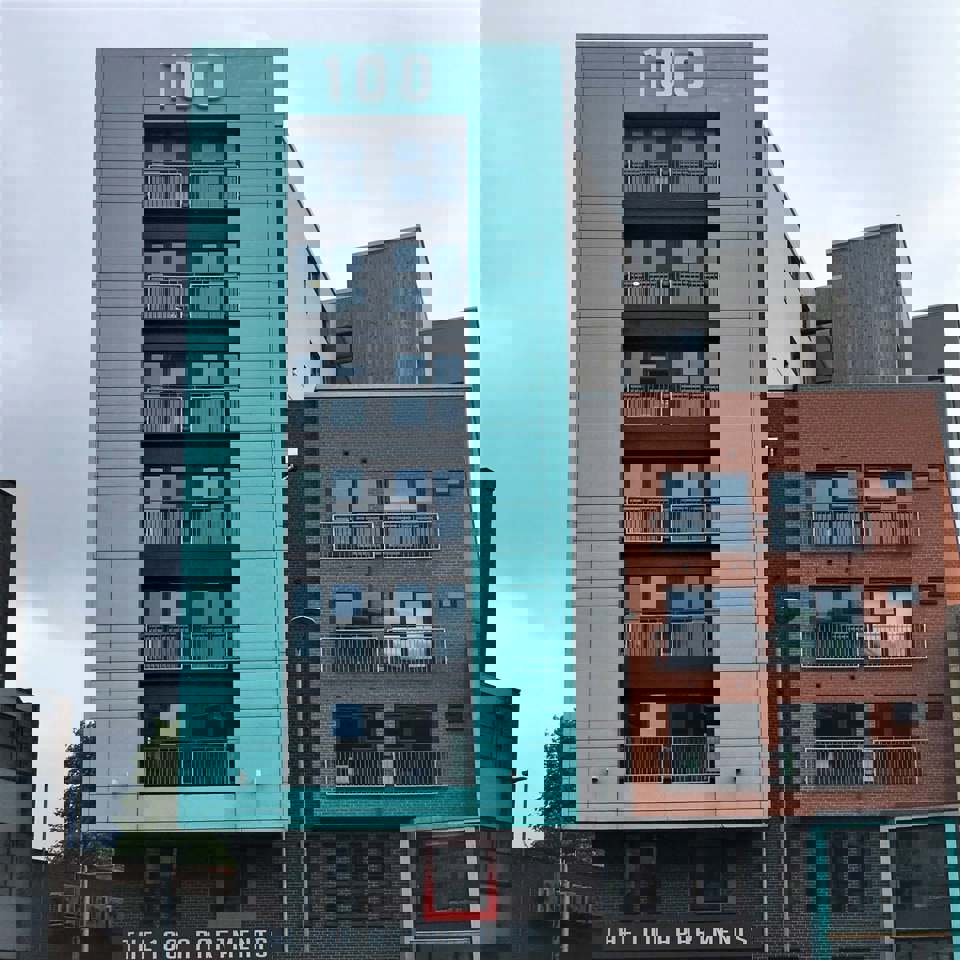 Vaughan Way, close to Highcross Shopping Centre, is one of Leicester’s busiest roads and where, behind three lanes of traffic, stands The 100 Apartments.