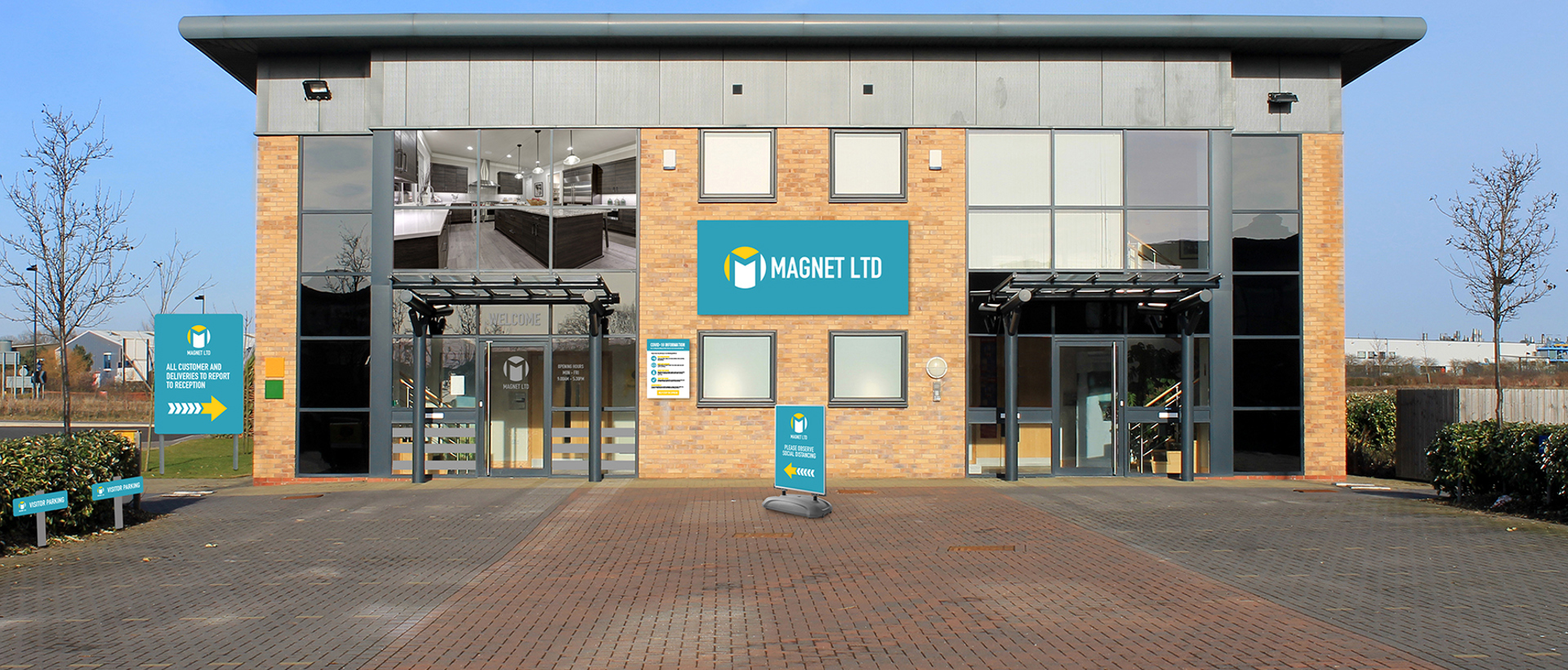 - Directional signage – offering many benefits, directional signage is essential to direct employees and visitors to your office. This is even more important with large office premises with parking zones and different buildings.