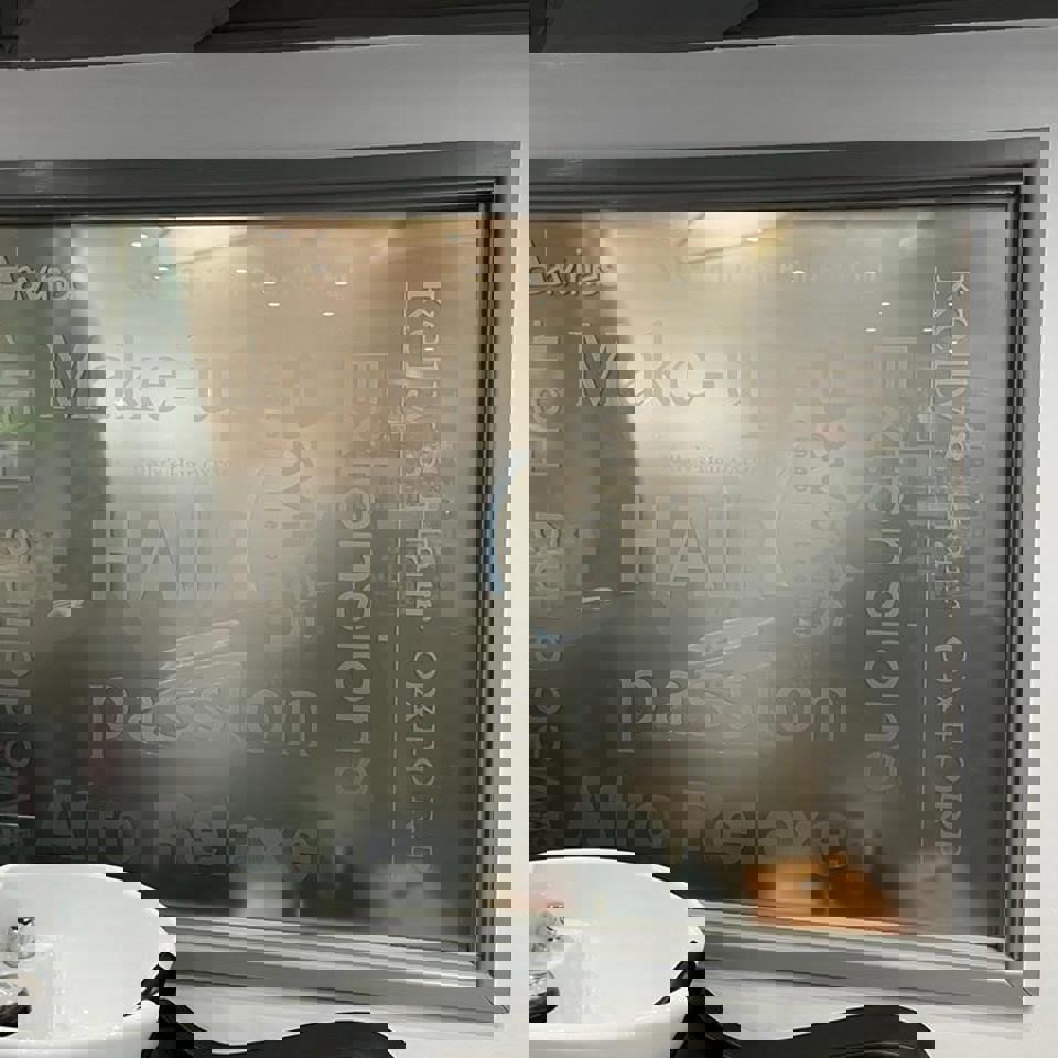 Kelly’s Hair also needed signage to complement their interior décor and create distinct areas within the shop to enhance their clients’ experience. To help achieve a sense of privacy we used interior frosted window graphics, decorated with the logo and branded elements to create cohesion in their space, and provided reception signs to welcome and guide clients.