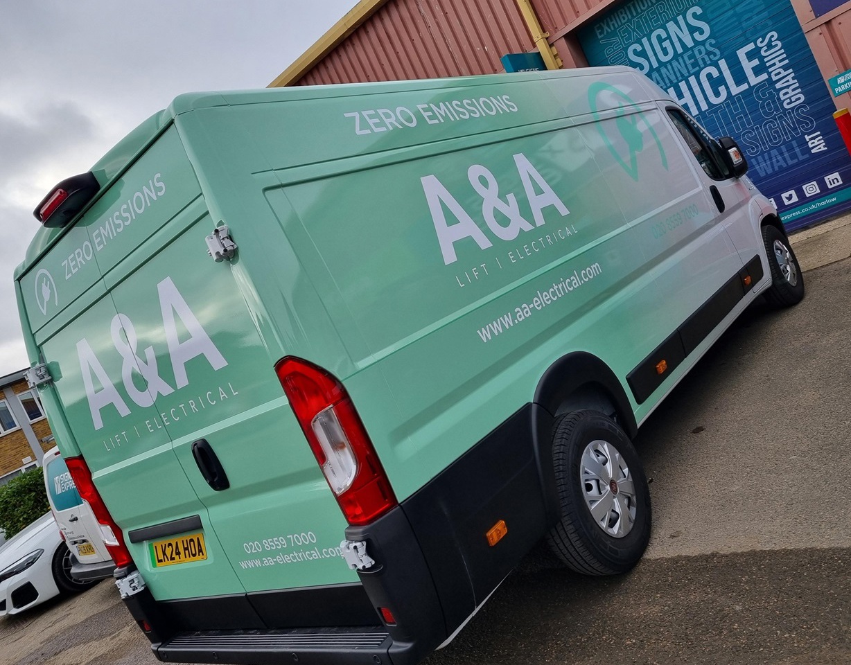 As East London based electrical distributors A&A Electrical continue to invest in their growing fleet, they continue their journey to a sustainable future with the arrival of their second electric van. The branded livery previously designed by Signs Express to reflect the Group's move towards eco-friendly deliveries, needed to be applied to the new e-Boxer van.