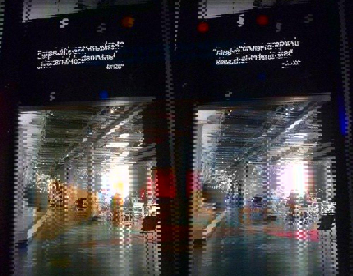 - Five floor-to-ceiling banners, each standing 4.7m tall.