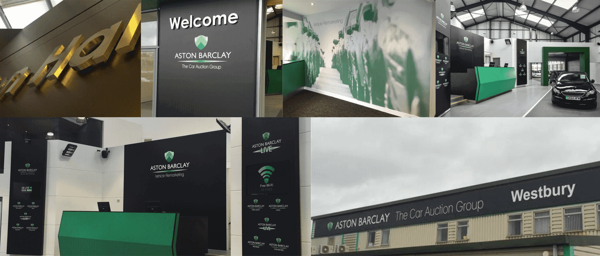 A collaborative project between ourselves and a design agency who came up with a concept for the new Aston Barclay live auction houses in Westbury & Chelmsford. We were tasked with producing all of the branding materials, this included printed wallpapers, built up letters and a 25 metre external sign tray.