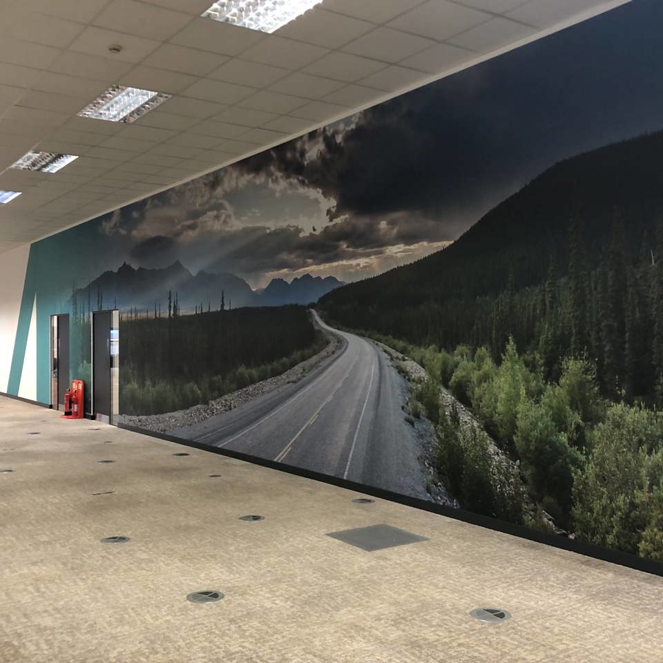 The most striking being a 27meter by 5m full colour textured one-piece wallpaper for the exterior of the training room, the largest wallpaper we have designed and installed to date and more images/wallpaper internally.