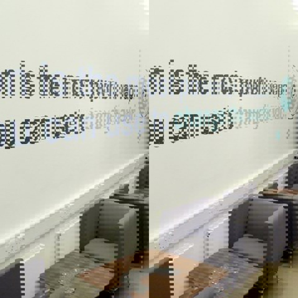 The result was a flawless finish — no visible joins, no misalignment, and no distortion of colour or text. The final wall graphics looked as though they had been painted directly onto the surface, perfectly balancing practicality, legibility and design flair.