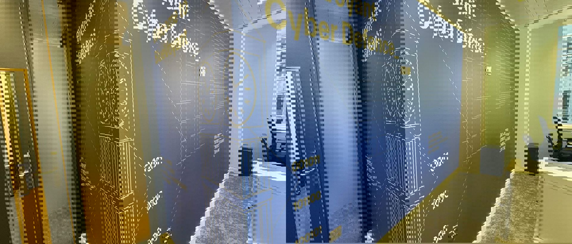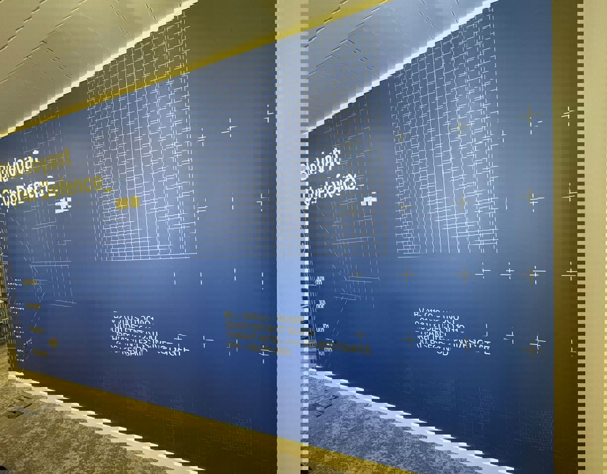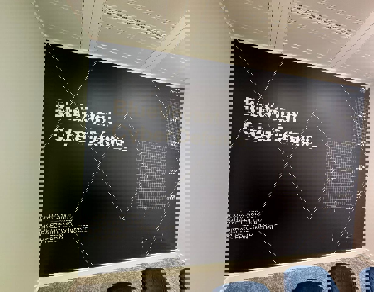 - Wall graphics that matched BlueVoyant’s brand exactly