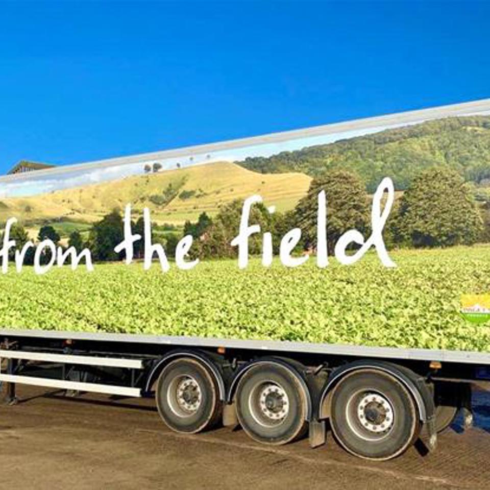 Paget’s wanted to apply bold, visually striking graphics to two of their large refrigerated trailers and truck units — not just to promote the business, but to celebrate their roots and the land they’ve farmed for generations. It was important that the graphics reflected the beauty of their countryside setting, and they already had the perfect image in mind: a photo taken by a member of the Paget family, capturing the landscape around Stills Farm.