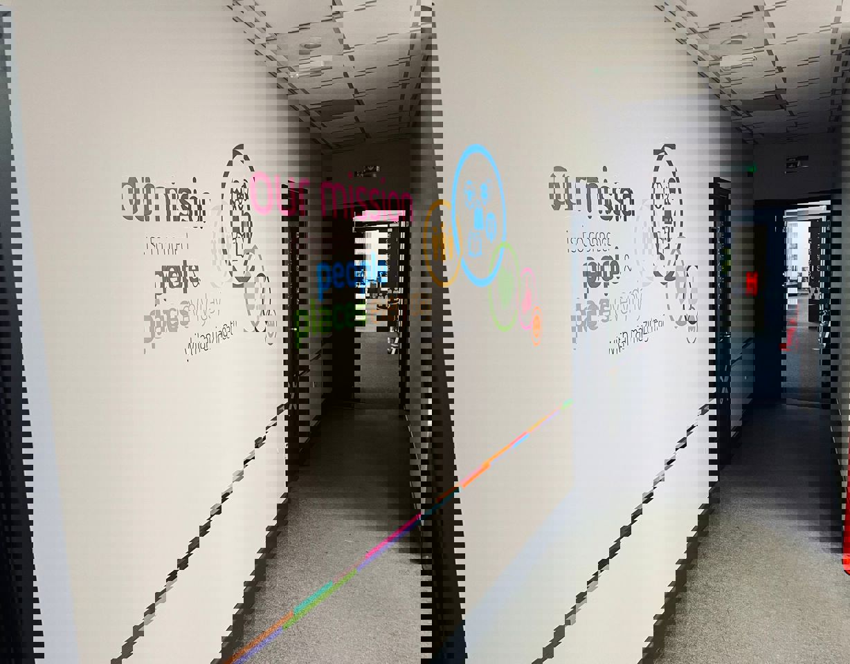 Our partnership with Reading Buses extended beyond their fleet. We were also commissioned to revamp their internal office space, installing high-resolution, full colour digitally printed and cut graphics. These installations brought energy, personality, and a clear brand identity into their work environment — aligning perfectly with their forward-thinking ethos.