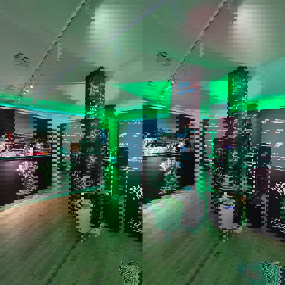 • A 3.5m × 2.4m illuminated lightbox, adding depth, brand visibility and ambient lighting