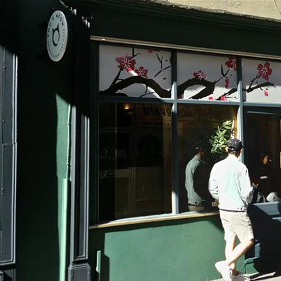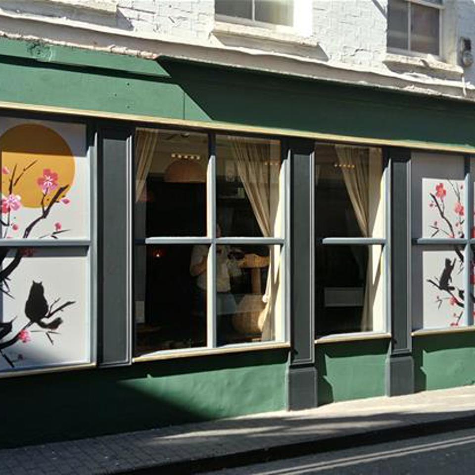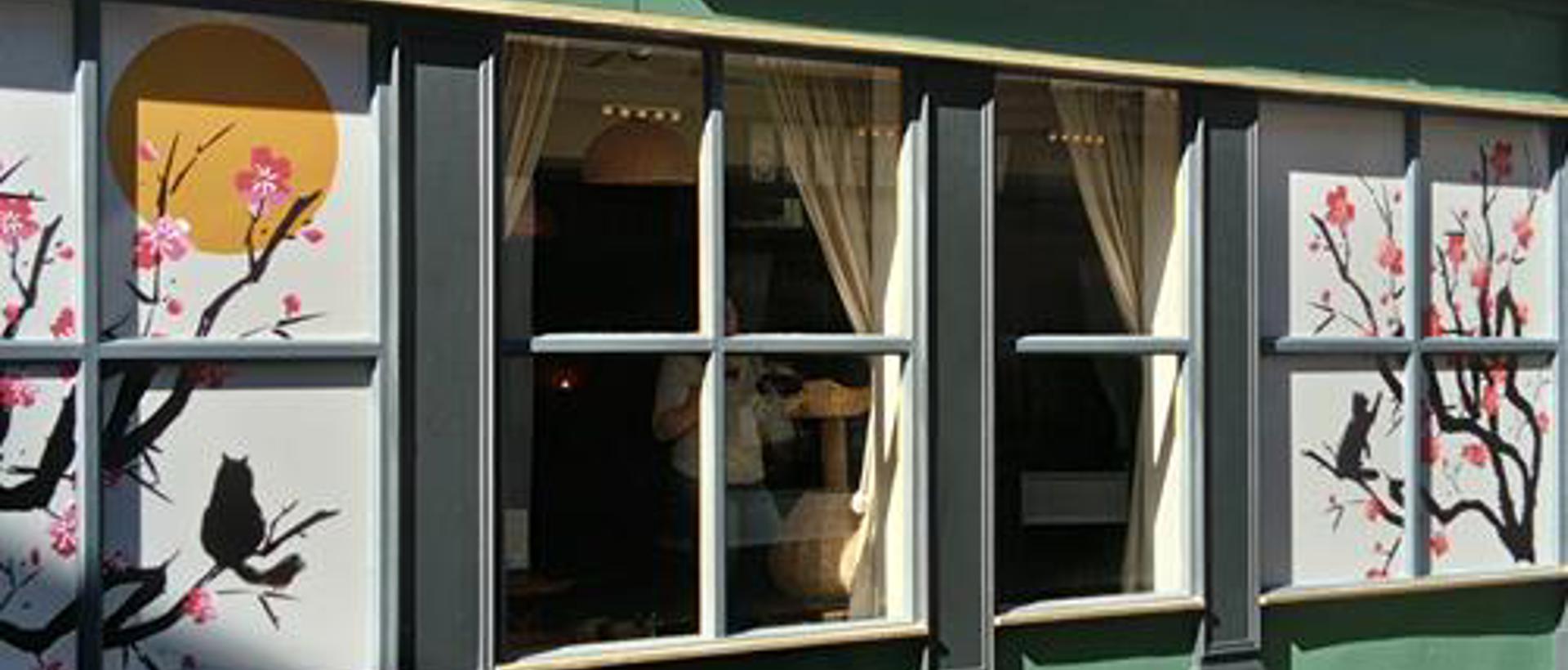 Using Eve’s ideas as the foundation, the in-house design team at Signs Express Bristol developed a series of graphics that combined soft, flowing Japanese motifs with modern branding elements. The new window graphics feature subtle patterns that play beautifully with natural light while maintaining visibility and privacy — a key consideration for both the cats and their guests.