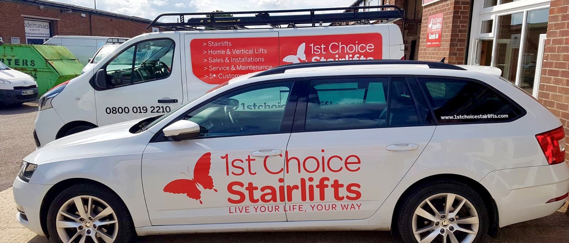 Another great local business we’ve had the pleasure of working with is 1st Choice Stairlifts, a family-run company based in Calne. Their engineers are out fitting stairlifts every day, so their vans and cars act as moving billboards across Wiltshire.