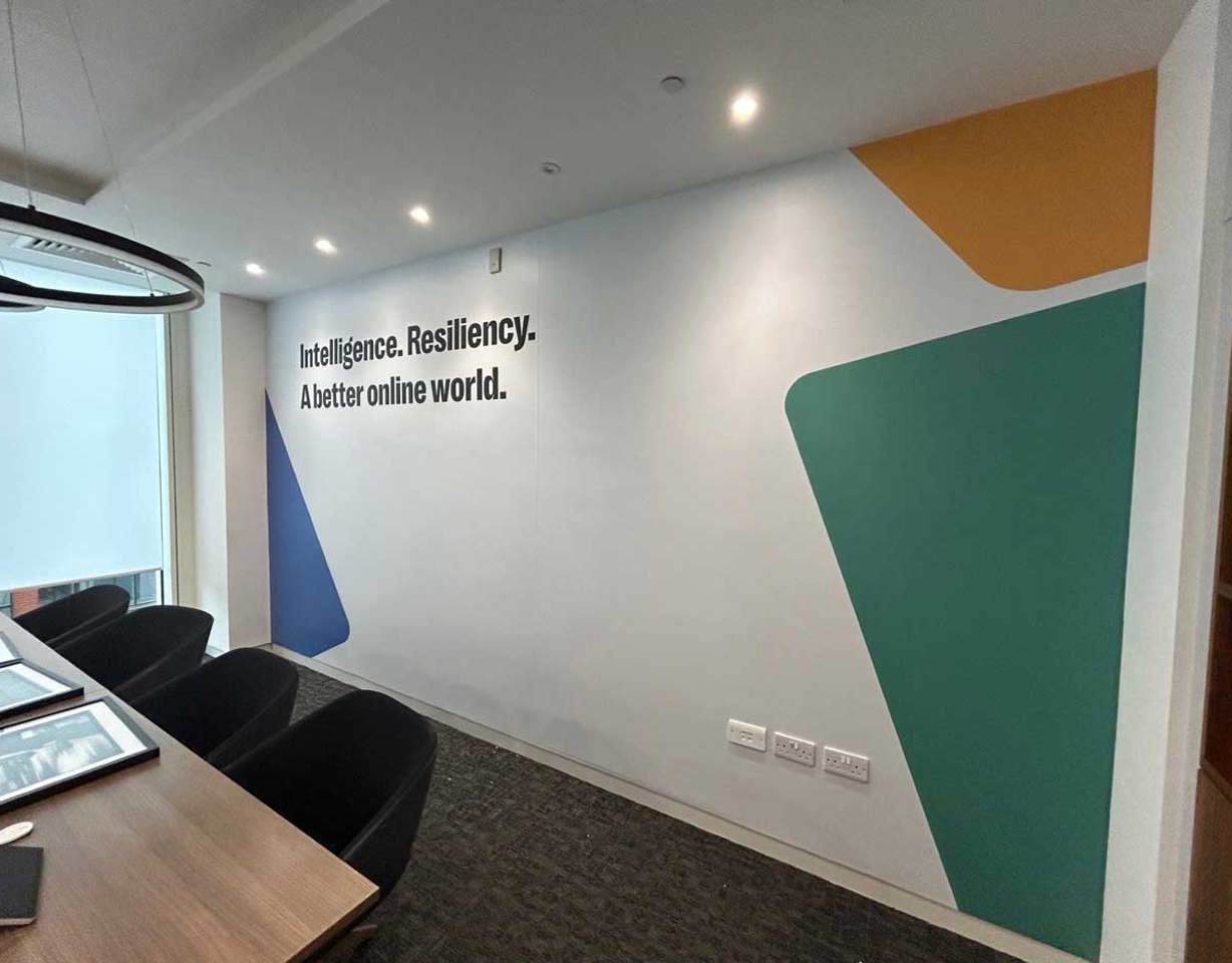 To create a striking visual impact, we produced and installed high-quality digitally printed wall graphics throughout the office. Some feature flat-cut acrylic letters, adding depth and dimension to key brand messages.
