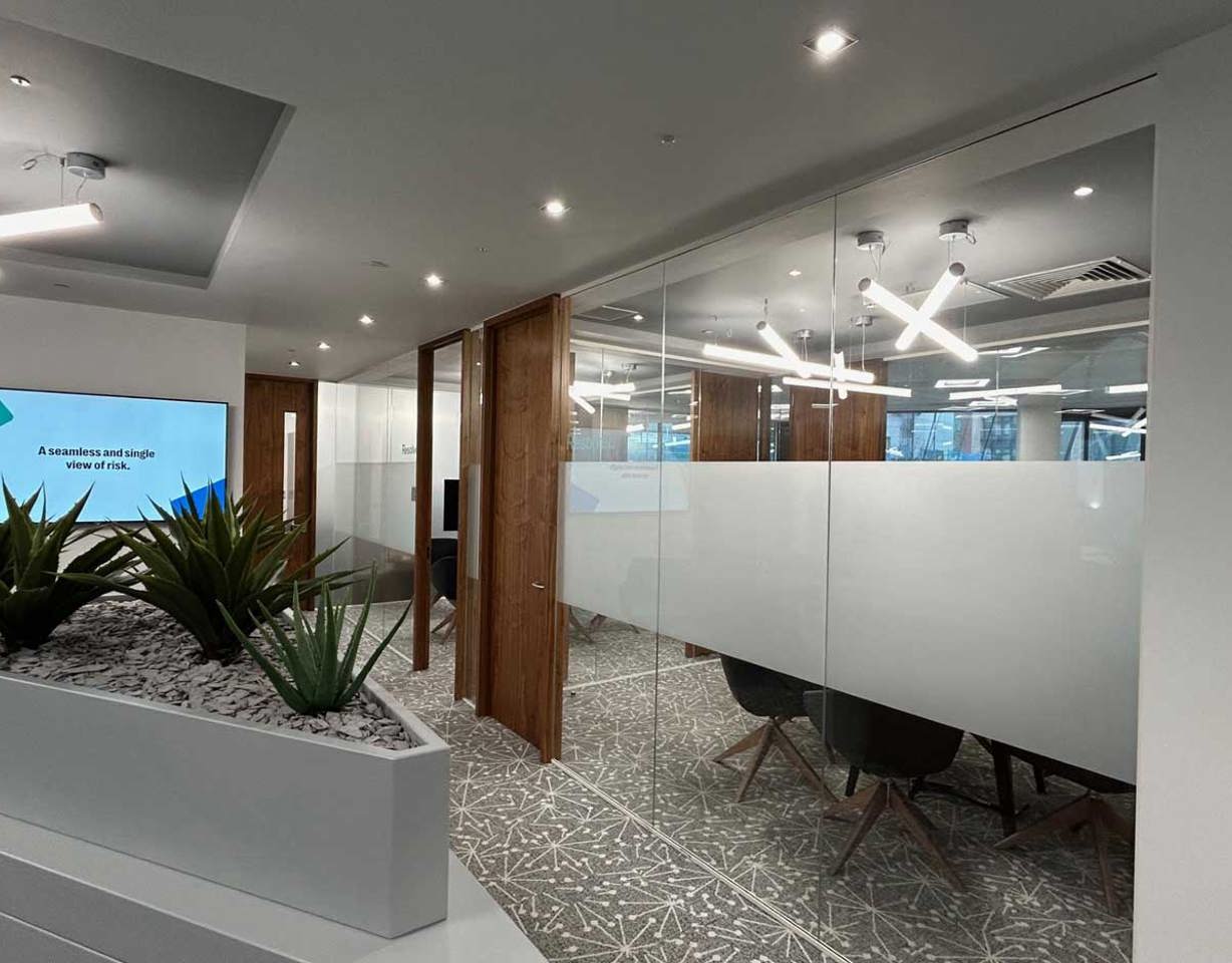 Privacy was a critical consideration for meeting rooms. We applied frosted vinyl strategically across the middle of glazed office walls to create a balance between openness and confidentiality. In designated areas requiring full privacy, complete frosting was applied to the entire glass panels.