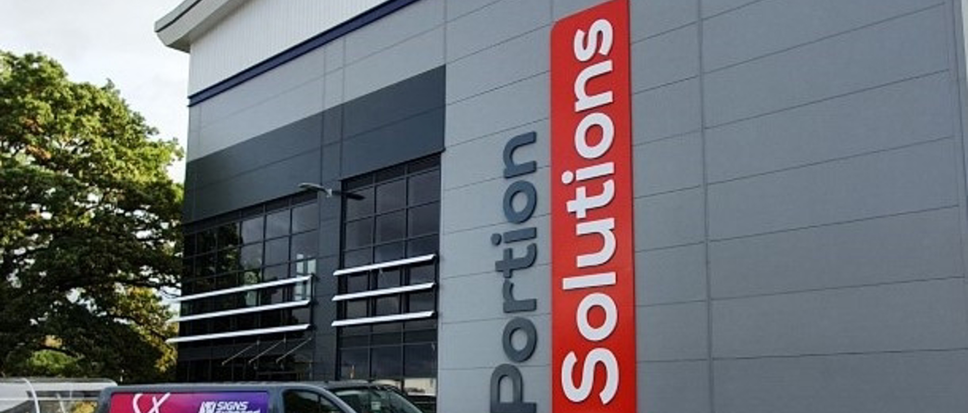 Portion Solutions approached Signs Express Telford with the challenge of designing and installing a large, impactful exterior sign for their new factory. The client required a sign that was not only large and noticeable but also stylish and in line with their branding guidelines.