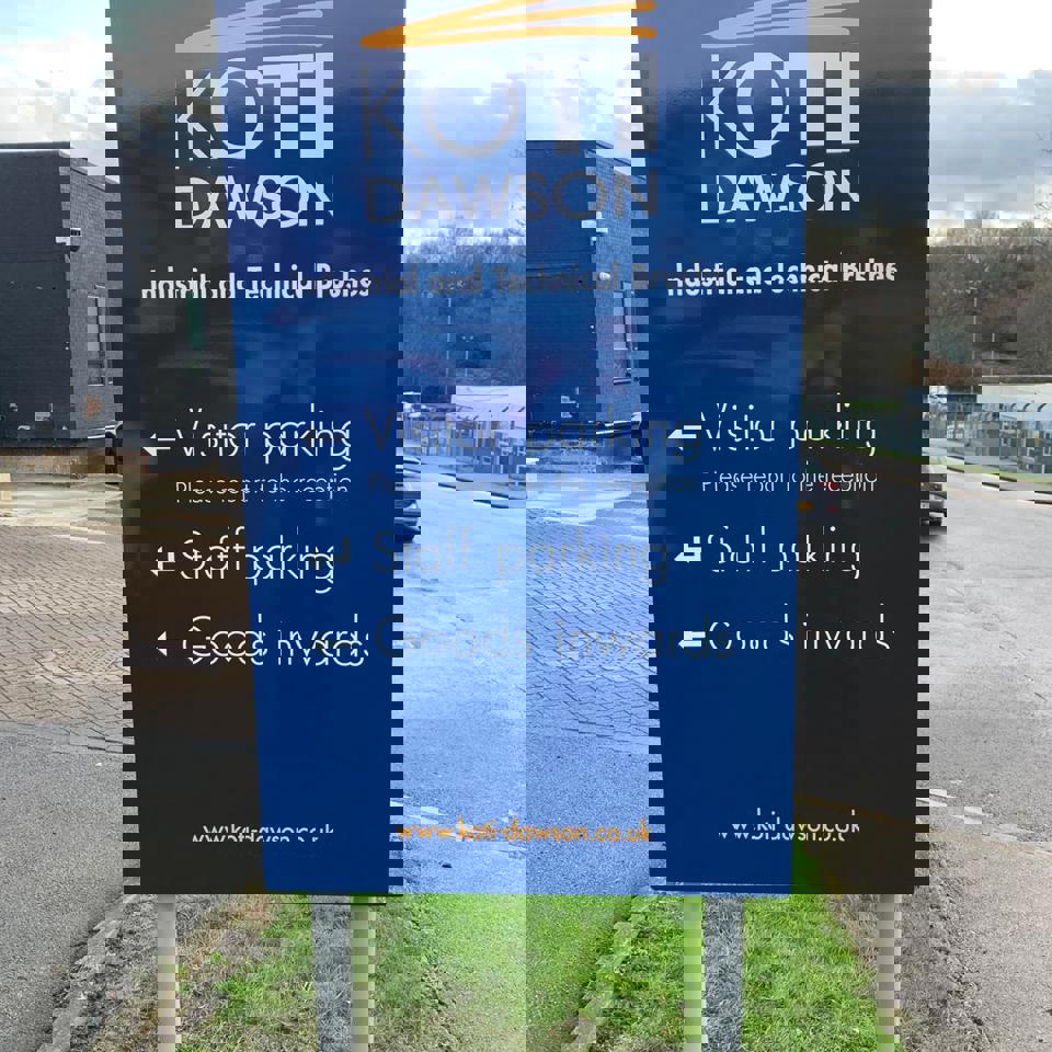 Koti Dawson required a signage update to co-inside with the company's current branding more accurately. The client had a vision of a new fascia sign along with some smaller signs all incorporating Koti Dawson’s logo and colours. The overall goal was to modernize and improve visibility.