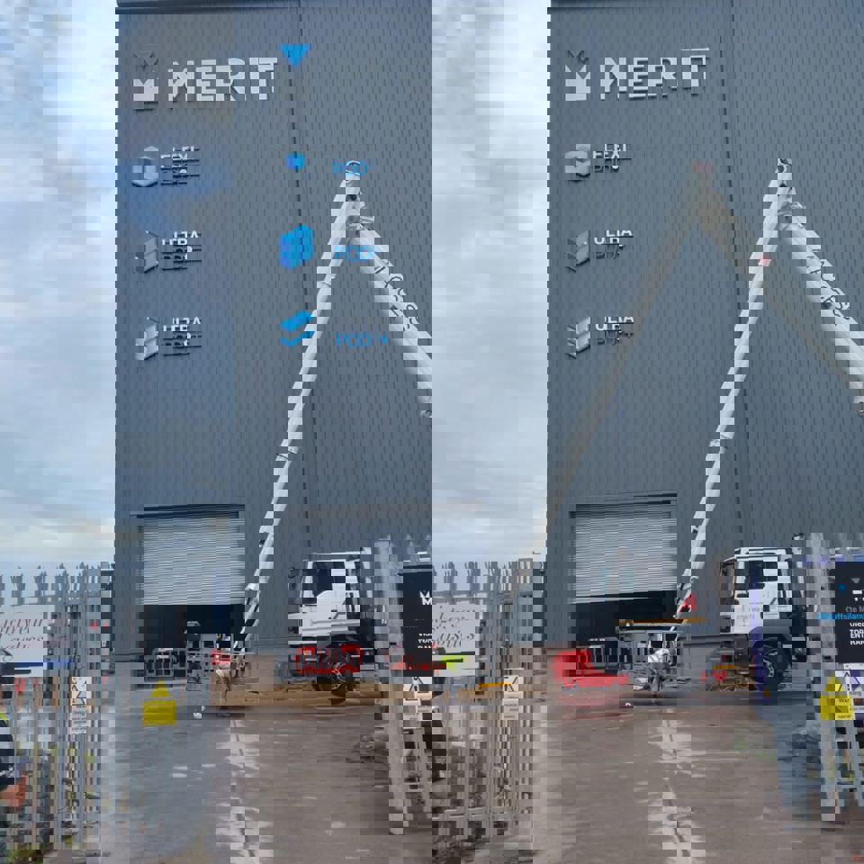 Despite the challenges of this project, we’re delighted Merit’s factory now boasts a high-quality, impactful sign that achieves their desired outcomes. Thanks in part to our partnership with trade signage suppliers Smith Trade Signage, the sign, elevated 20 metres up on the face of the building, calls attention from across the industrial estate and raises the profile of the business within the local community.