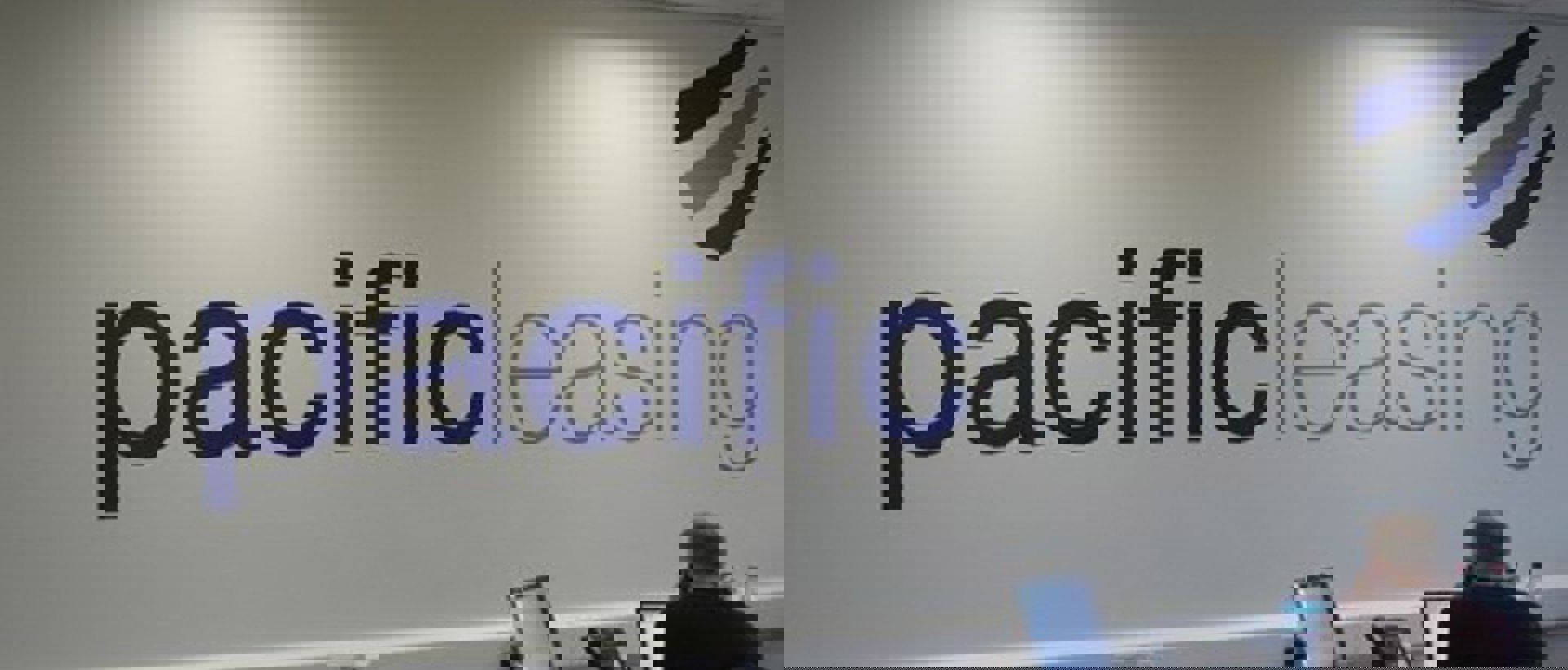 - Window graphics to balance privacy with natural light while still showcasing the Pacific Leasing logo and brand elements.