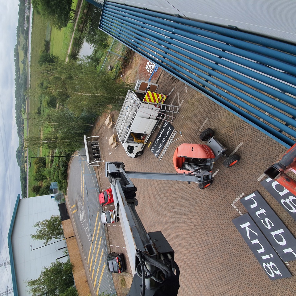 The install was too high for ladders, so our team used powered access gear to reach the cladding. Everyone’s IPAF-qualified, so it was a safe, straightforward job. We stripped the old sign first, cleaned the panels, then fitted the new one. Took our time to get the alignment right – no rush, just steady work.