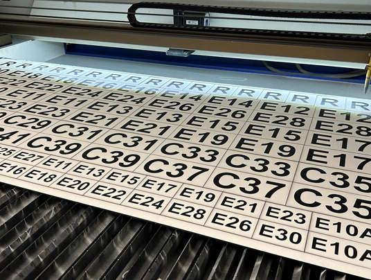 - Process: The laser engraving process precisely etched through the top layer to reveal the contrasting colour beneath creating clean and highly professional signs.