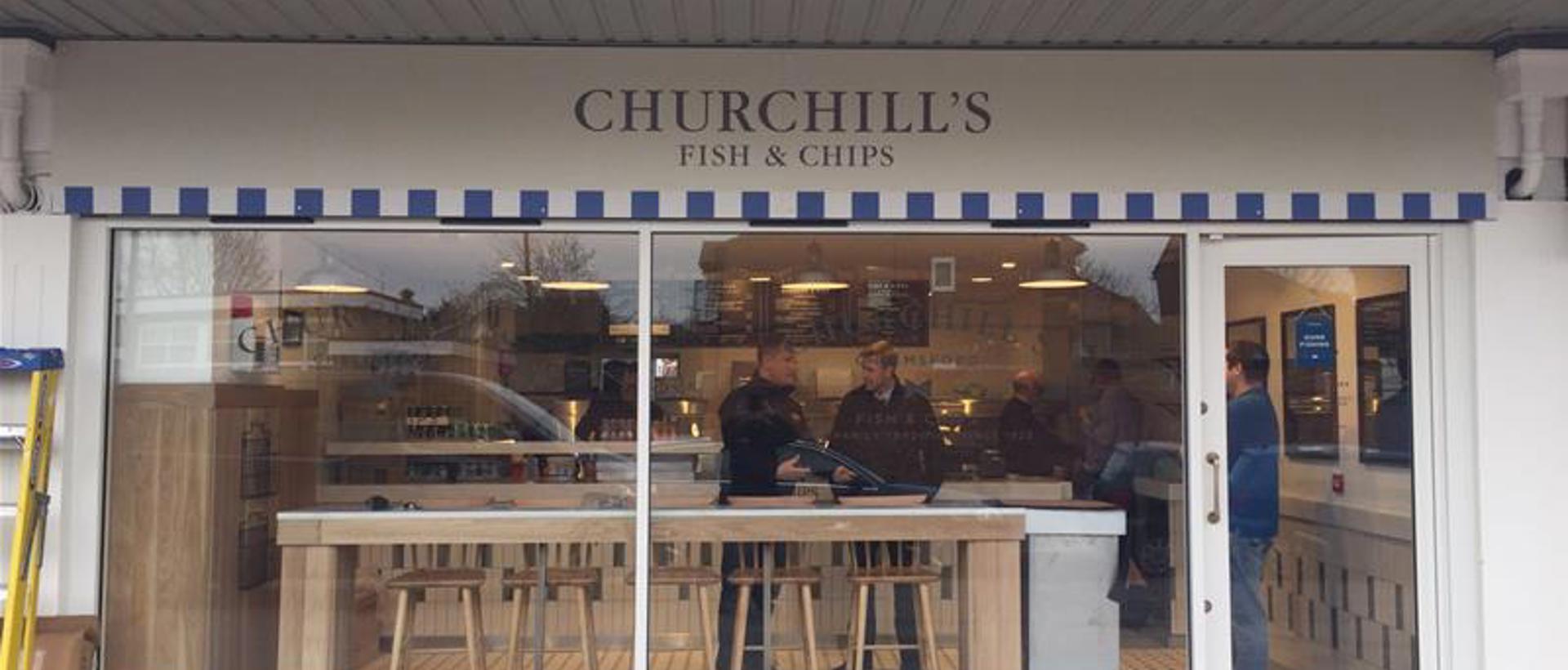 We arranged a fitting time that suited the team at Churchill’s, avoiding their busy service hours. On the day, we cleaned the glass down, lined up the artwork, and installed the new graphics. The mix of inside and outside panels meant everything was crisp and visible in all light conditions.