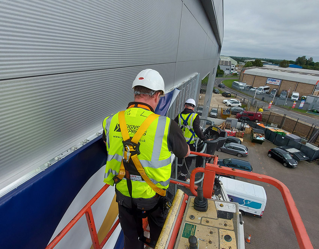 To install the signage onto the exterior cladding, our team utilised specialised interior scaffolding that extended 20 metres in length.