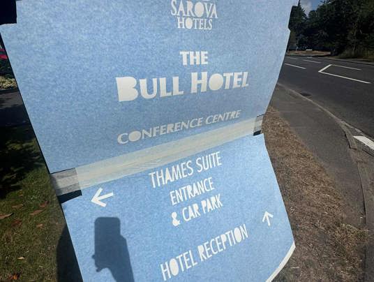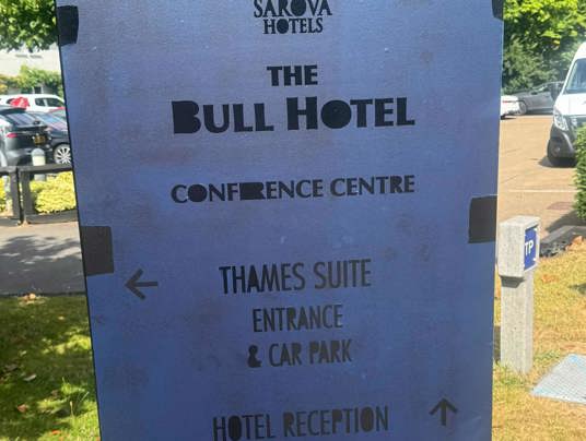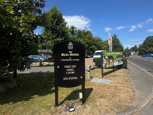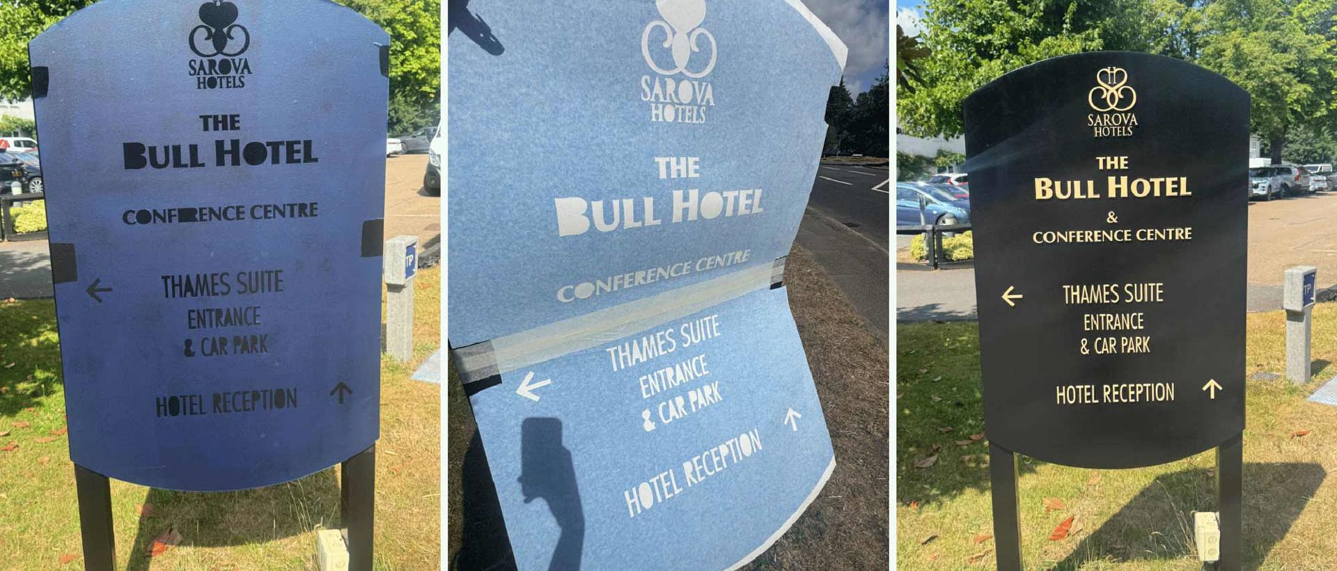 Sarova Hotels is one of those clients we’ve built a steady, long-term relationship with. They run a collection of hotels across the UK that manage to feel both historic and current, all at once. The Bull Hotel in Gerrards Cross is a great example, originally a 17th-century coaching inn, and still very much full of character. Our client reached out to us at Signs Express Twickenham to update one of their directional signs.