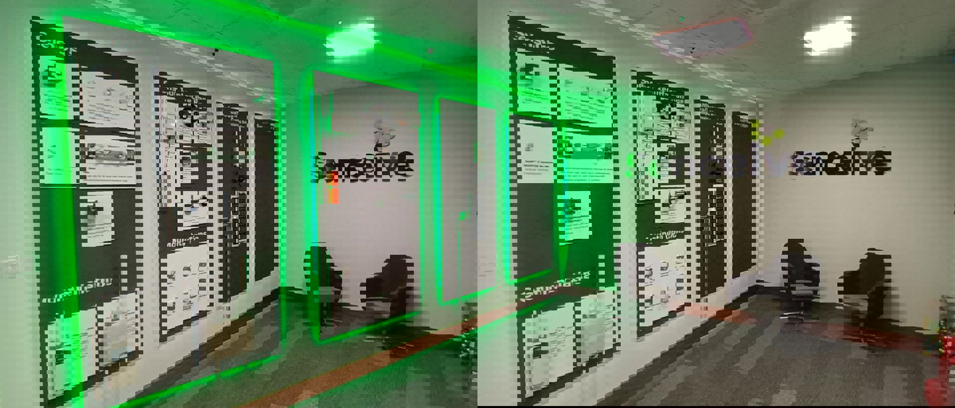 Senceive, a leading provider of innovative wireless condition monitoring solutions, approached Signs Express Milton Keynes to assist with the rebranding of their new office. Their vision was to create a workspace that was visually engaging, different in each room, and effectively showcase their products.