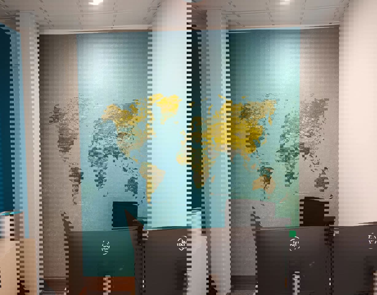 Each office and meeting room featured a high-quality vinyl wall wrap, designed for a distinct theme while maintaining the brand.