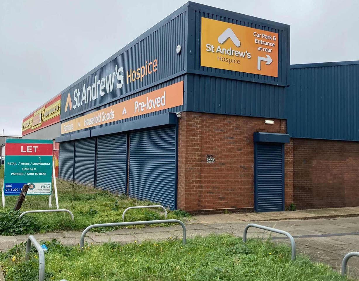 St Andrews Hospice recently opened a brand-new superstore in Grimsby, Lincolnshire and needed eye-catching retail shopfront signage to attract attention from passing traffic. As a busy location with high visibility potential, the hospice wanted signage that would clearly communicate the brand and make the store easy to spot from the road.