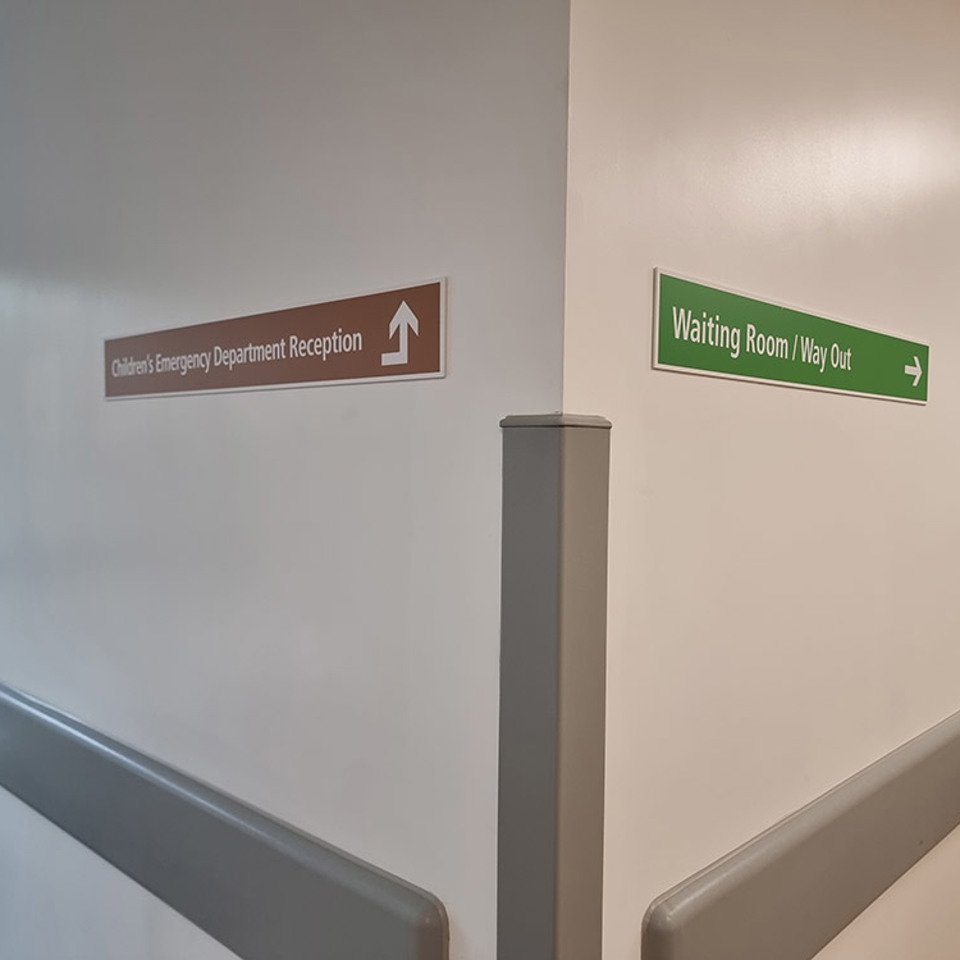 We provided over 300 wayfinding signs for the expanded A&E, including numbered window graphics, projecting signs and a large reception sign to help staff and patients navigate the new and improved facility.