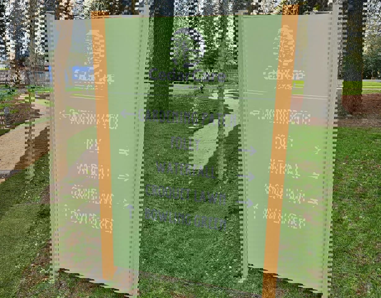 - External signs featured wood-effect wrapped panels and posts, offering a warm, welcoming appearance while remaining durable and low maintenance.
