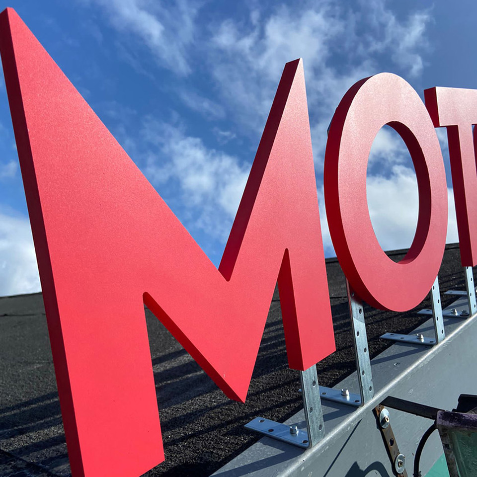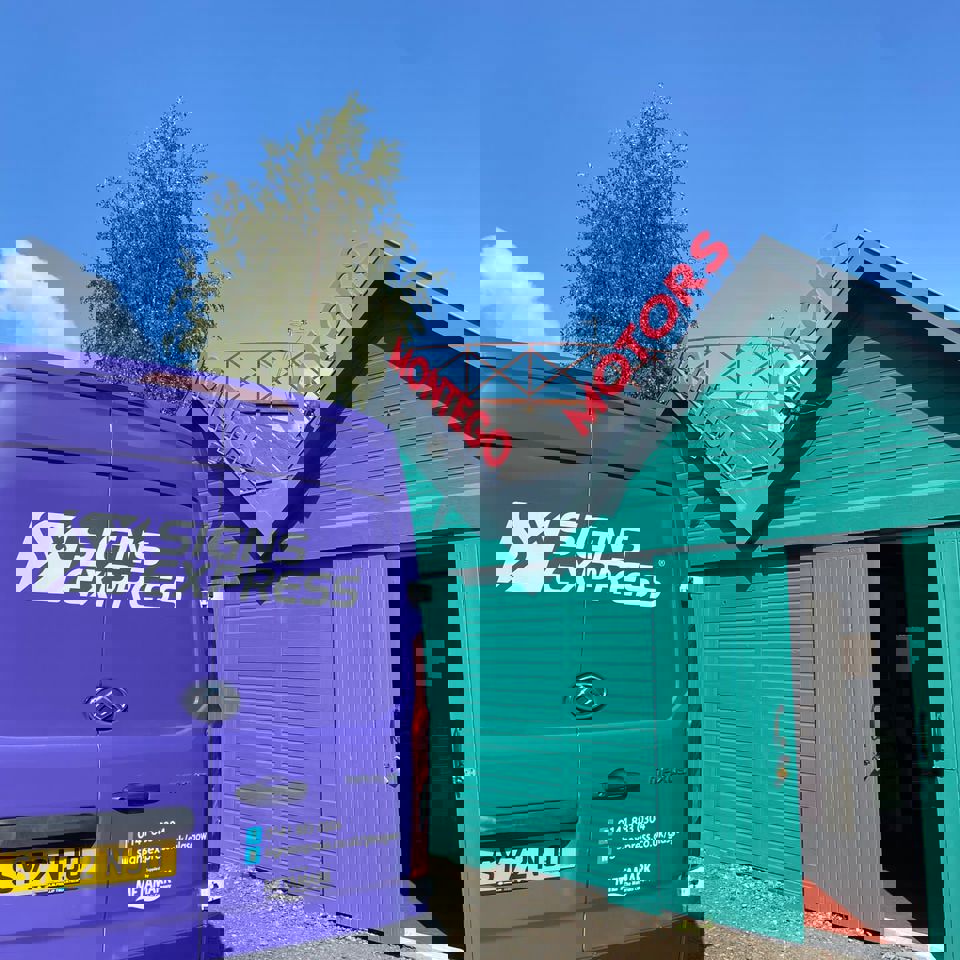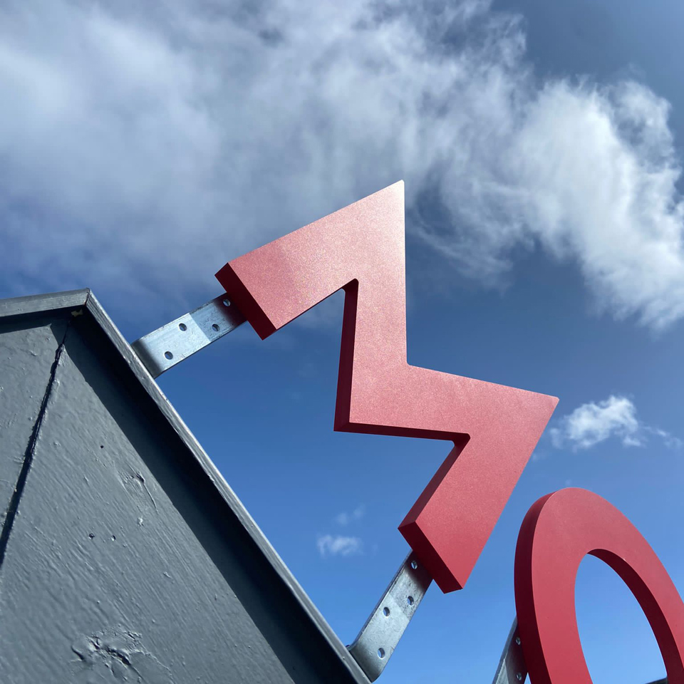 The client had a vision of some large red-letter exterior signs to go on the roof of some outhouses. With a tight budget, the production was a challenge for the Signs Express team however, they managed to create and install 19mm thick rigid PVC letters, which were paint finished in Pantone 185C Red. These were mounted to the roofline in galvanised steel brackets.