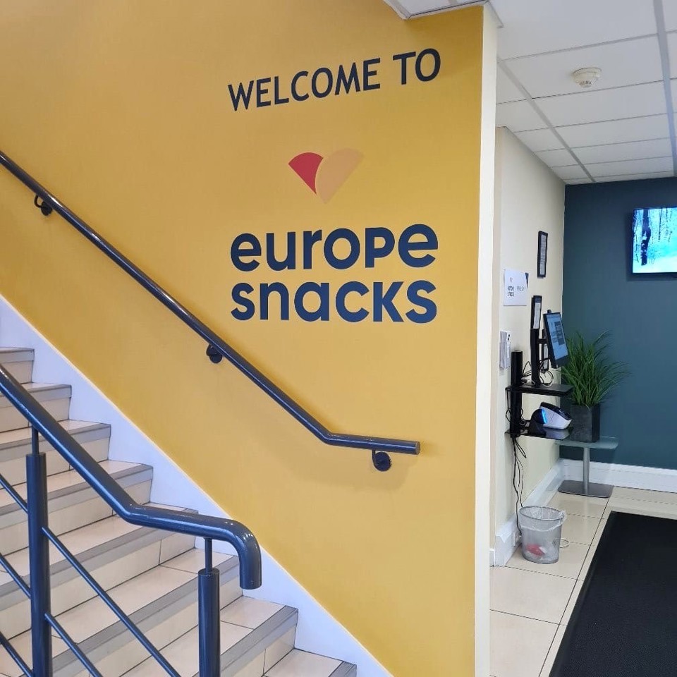Europe Snacks, previously known as Burts Snacks, recently underwent a significant rebranding to refresh their identity and enhance their visibility. The task of designing and installing signage that would effectively incorporate the new branding inside and outside the premises was given to Signs Express Leicester and Loughborough. Europe Snacks' brief aimed to ensure consistency in every aspect of the company's signage by seamlessly integrating the rebrand.