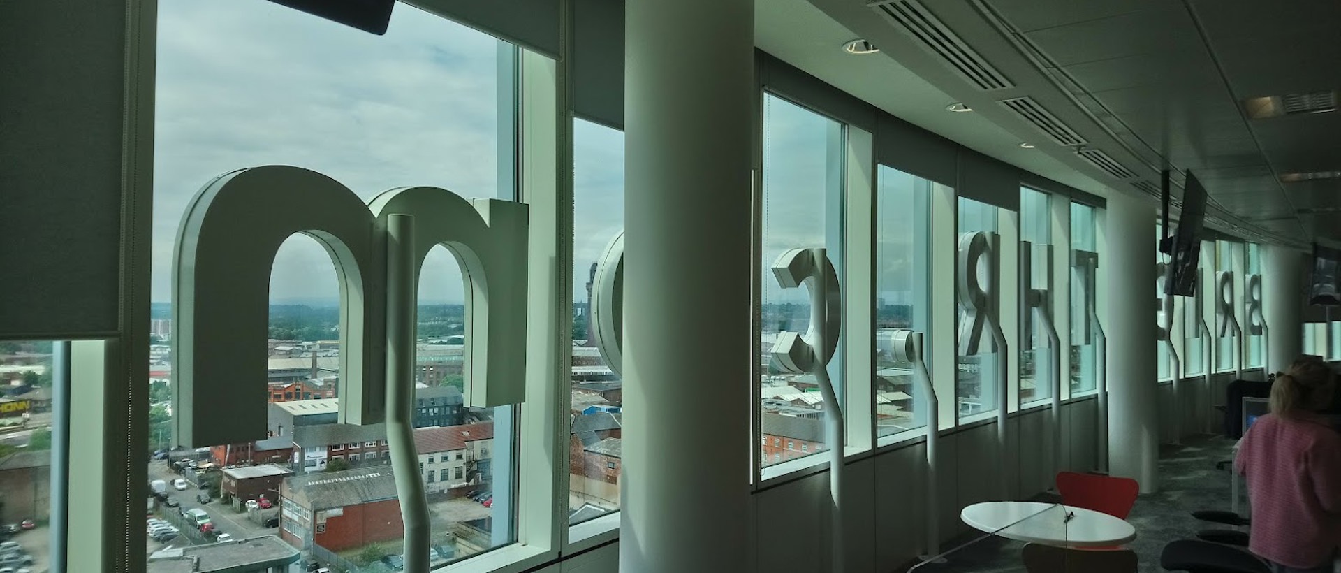 Our brief was clear, our client required large individual letters which were to be illuminated and internally mounted behind their glazing. Furthermore, each letter needed to have interchanging colours to make it as eye-catching as possible and also be seen from a distance over the Manchester skyline.