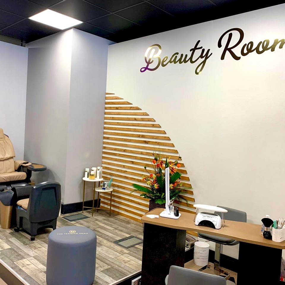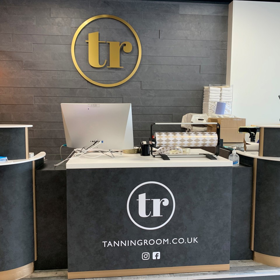 Signs Express Swindon have been working with The Tanning Room, a local tanning salon, to provide signage before their opening. The client wanted a full sign makeover with exterior and interior signs including mirror gold fascia letters, window graphics, architectural coverings, and wall decals.