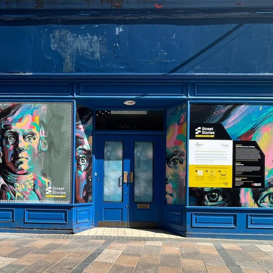 Go Forth Stirling worked with the Street Stories team of design agency Arch Creative and Graffio Arts along with Signs Express Falkirk to deliver a new vacant retail units project, designed to improve the appearance of empty shops in the City Centre and turn them into points of interest.