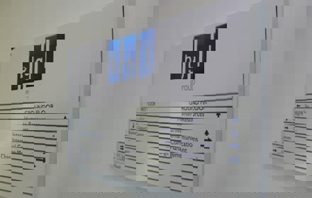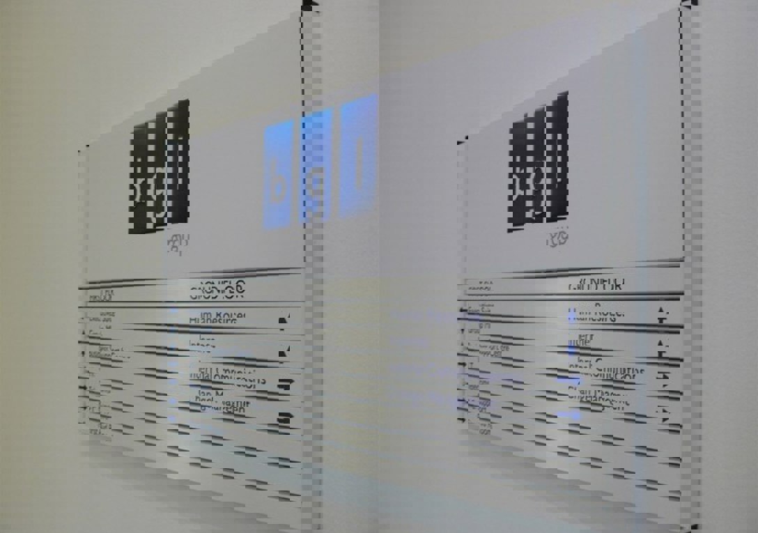 - Reception and internal signs, using full-colour prints and vinyl-applied acrylic panels.