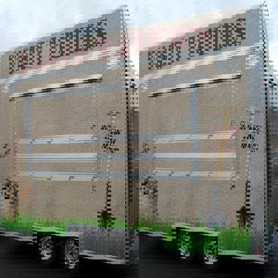 Once the artwork was signed off, it was over to our fitters. We printed everything in-house and applied a full vinyl wrap. Lining up the pattern took time because the texture had to sit just right, especially around the corners, but that’s what we do best. When the job was done, the trailer didn’t look like a catering van anymore; it looked like a proper brand on wheels.