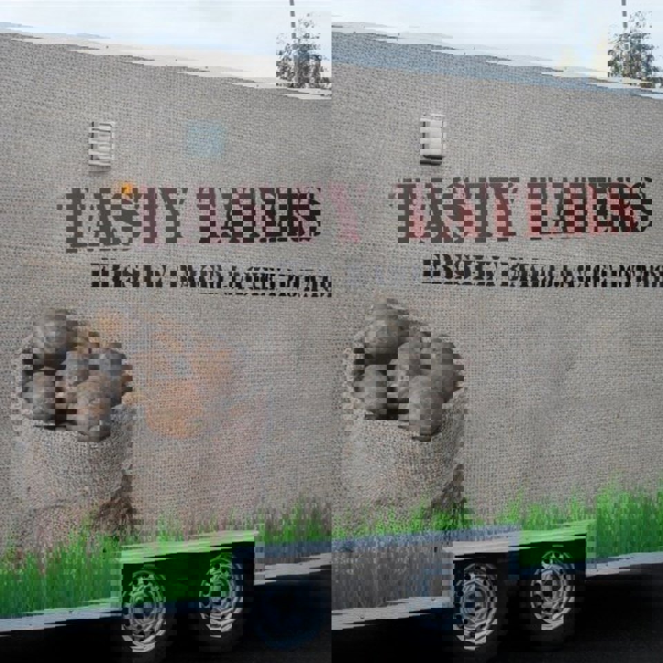 When the team behind Tasty Taters decided to launch their new food van, they wanted something that really showed off their brand. The trailer itself was just a plain white box when it arrived, clean, but not very exciting. They came to us asking if we could help them turn it into something that would catch people’s eye and feel true to what they do.