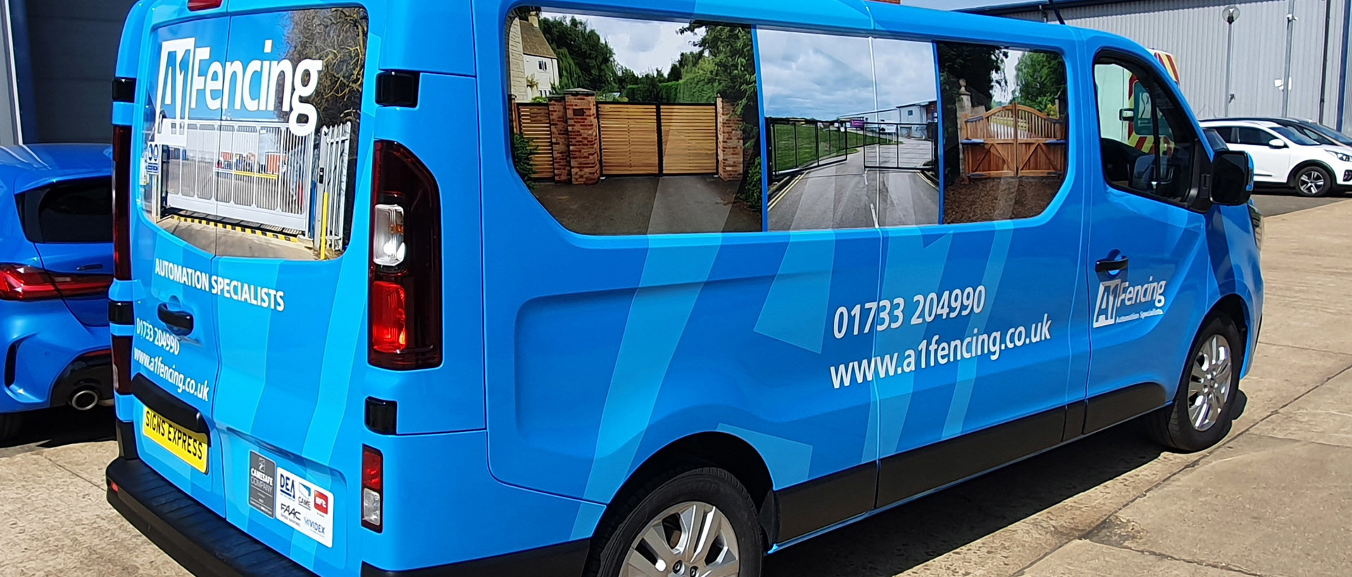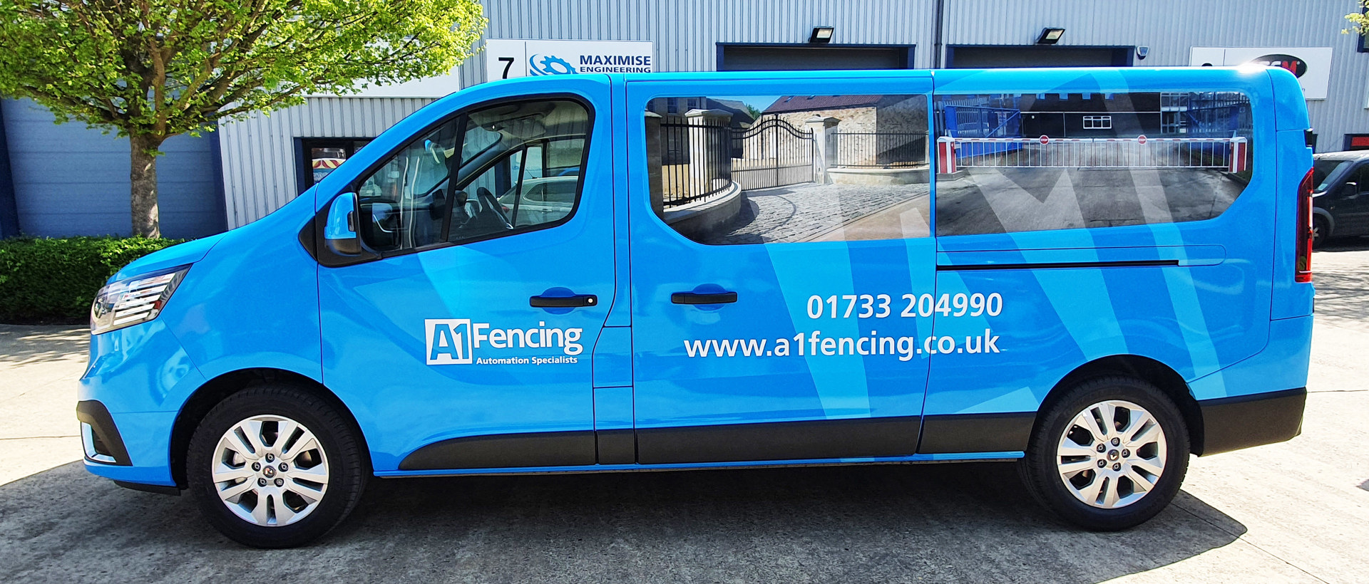 A1 Fencing, a loyal customer of Signs Express Peterborough purchased a brand new black Renault Traffic. They asked us to wrap the whole vehicle in their corporate blue along with full branding as part of their updated fleet.