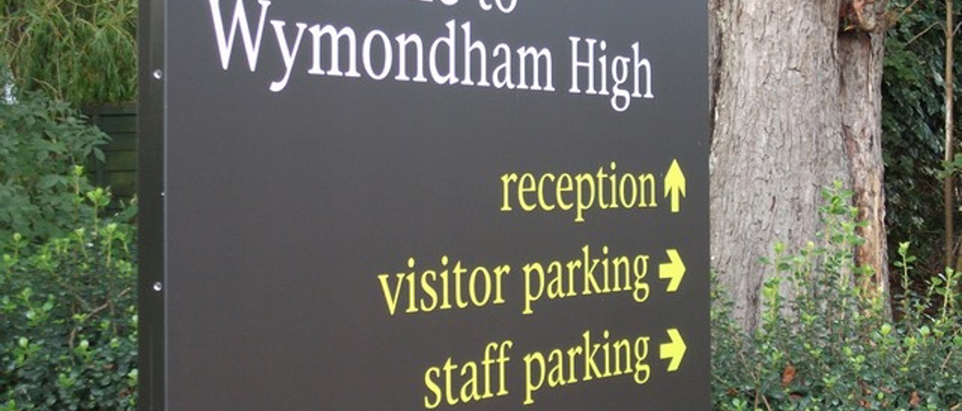 Over the summer, we were back out on-site at Wymondham High School in Norfolk. The school had gone through a full rebrand and wanted signs that matched their new look.