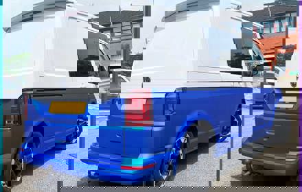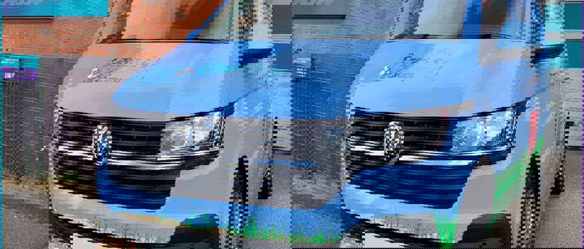 This beautiful finished project consisting of a half wrap in matte metallic blue for this VW Transporter really stole the show the day we completed this.