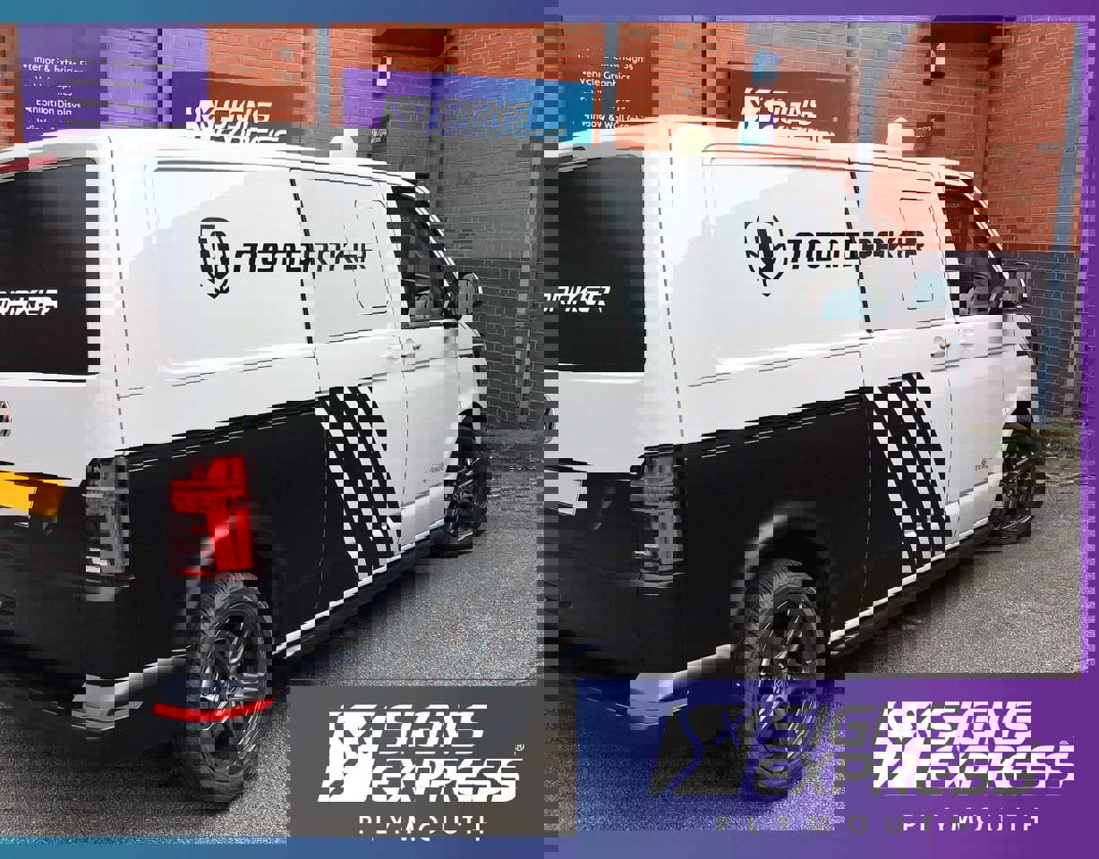 This bold half wrap consists of matte black vinyl and added 'Contra Vision' to the rear side windows, giving additional security.