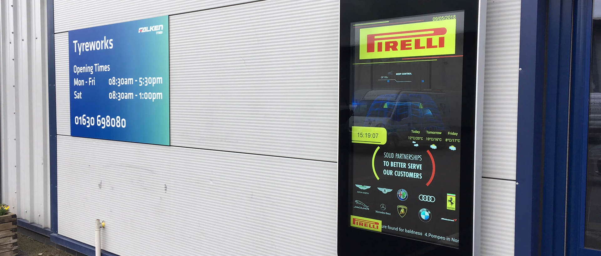 Strong, weatherproof and low-maintenance, these displays are a long-term solution for businesses that want signage that’s always visible and up to date.
