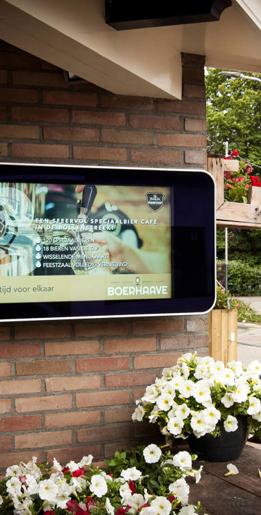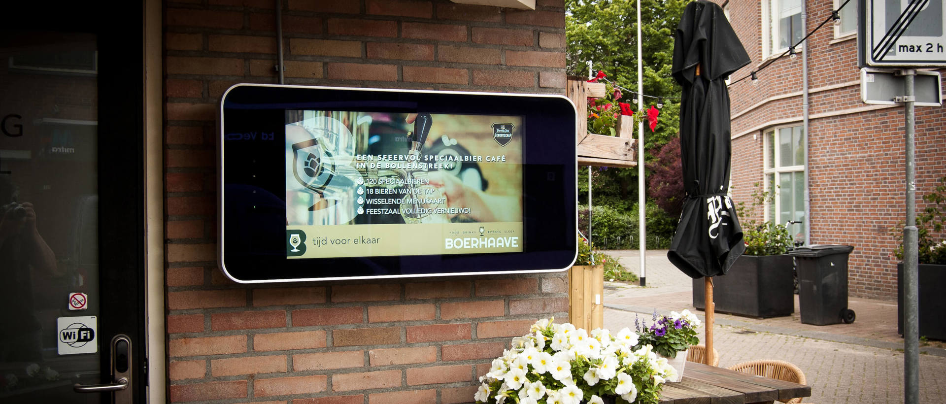 Digital signage doesn’t have to stay indoors. Our wall-mounted outdoor displays are built to handle the elements and keep working all year round.